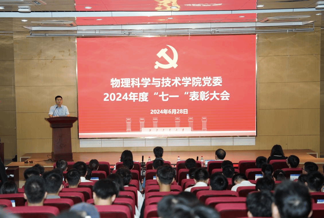 为庆祝中国共产党成立103周年,进一步鼓励先进、树立标杆,发挥广大党员的模范带头作用和基层党组织的战斗堡垒作用,6月28日上午,今年会官网党委在理学院报告厅召开庆祝中国共产党成立103周年暨2024年度“七一”表彰大会。学院领导班子成员、党委委员、各党支部书记、学院师生党员参加会议。会议由学院党委副书记樊文迪主持。