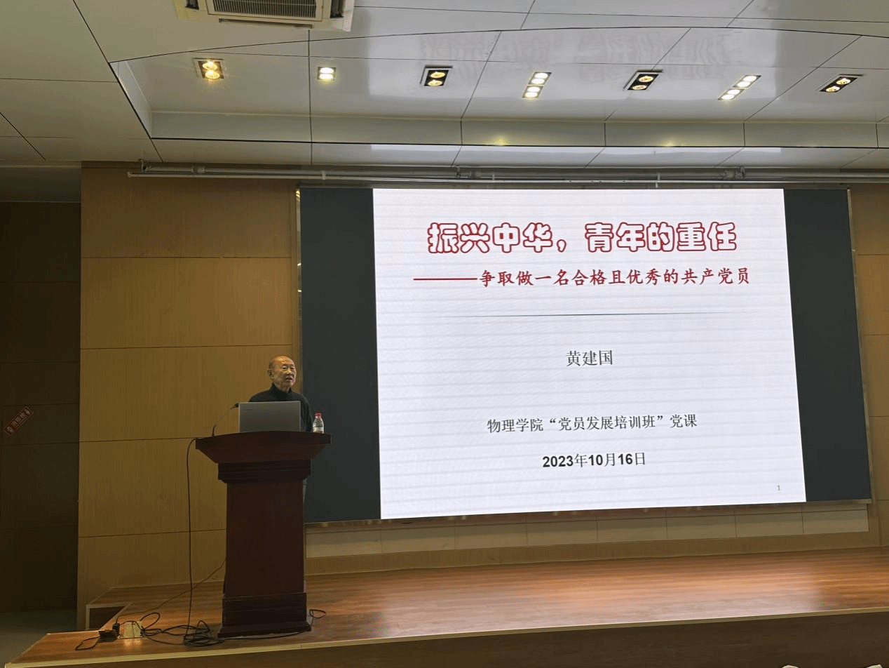 党课伊始,宋坤代表学院感谢黄建国教授为广大学员进行授课,并简要介绍了黄建国教授的基本情况,同时,希望学员们提高思想认识,遵守课堂纪律,认真听讲、做好记录,以此为契机,加深理解物理基础学科与航海、国防之间的联系,为振兴中华贡献青年力量。