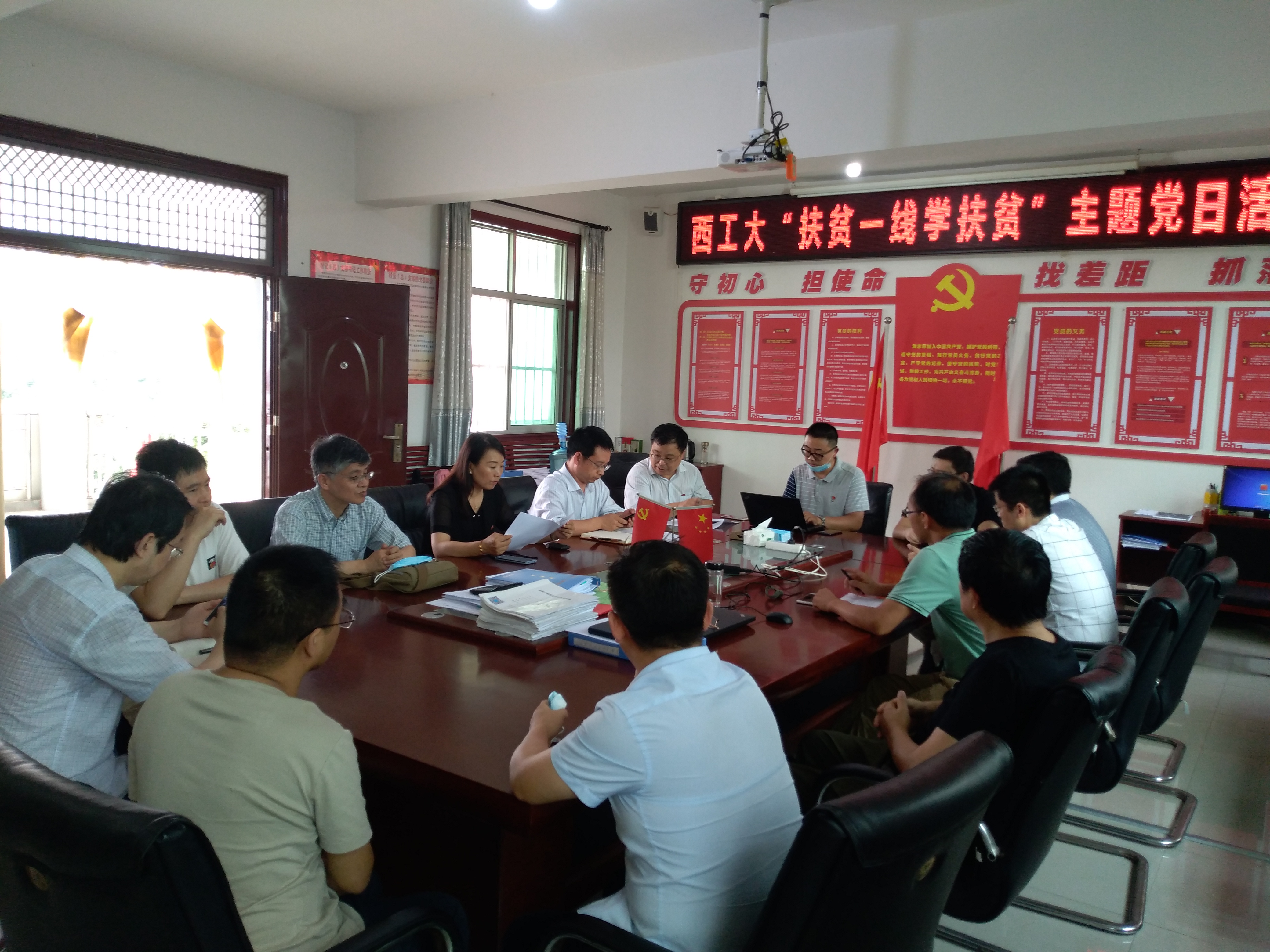 2020年是决胜全面建成小康社会、决战脱贫攻坚的收官之年,是实现第一个百年奋斗目标的关键之年。为深入贯彻习近平总书记来陕考察重要讲话精神和习近平总书记关于扶贫工作的重要论述,贯彻落实党中央脱贫攻坚决策部署,7月3日,数学与统计学院、今年会官网、化学与化工学院党委领导班子带领部分教师党支部书记、院办党员十余人赴鄠邑区余下街道灵山寺村开展主题为“扶贫一线学扶贫”的主题党日活动。西安市科技局派驻鄠邑区余下街道灵山寺村驻村工作队队长仇寅虎、西安市优秀驻村第一书记关盛元及相关工作人员参加会议。会议由物理学院副书记王洲航书记主持。