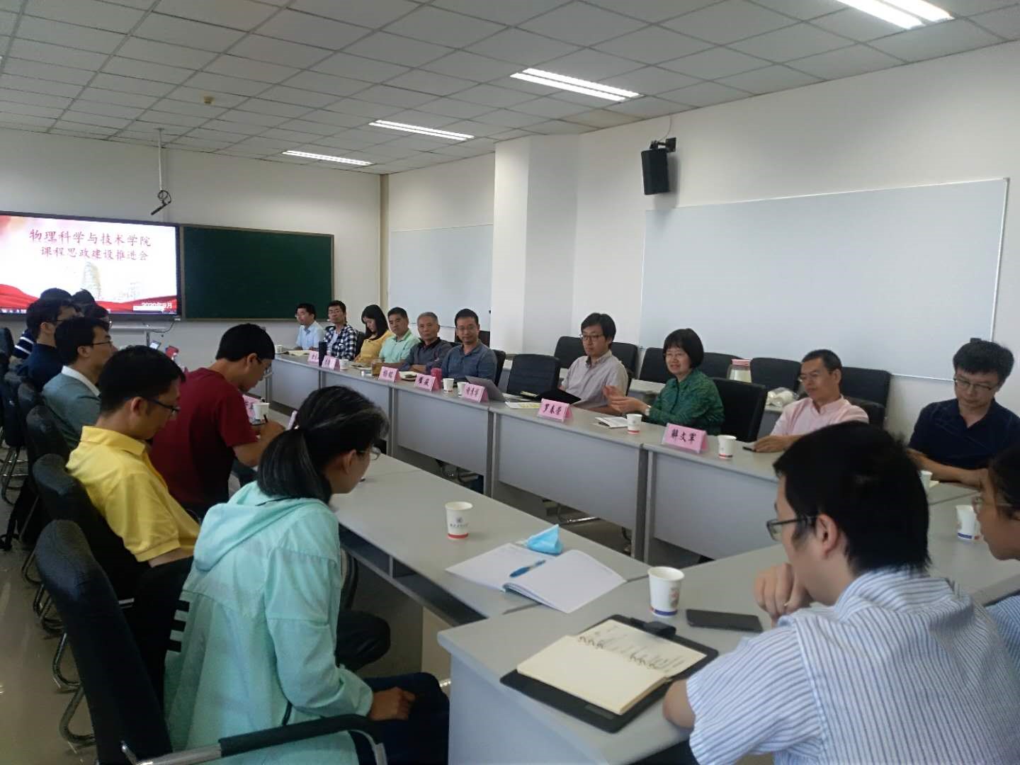为全面贯彻落实教育部《高等学校课程思政建设指导纲要》和汪校长在新学期干部大会讲话精神,全面推进课程思政建设,9月18日上午,物理学院举行课程思政建设推进大会。会议邀请了马克思主义学院书记吴闻川和陈诚平、折军两位教师代表,特别邀请“陕西省高校课程思政教学能手”、今年会官网“三育人”先进个人数学与统计学院潘璐璐老师为大家分享她的课程思政心得。学院领导杨铭、翟薇、谢彦博,省教学名师罗春荣,公共课负责人、专业负责人、教师代表、辅导员代表和近年新入职教师30余人参加会议。