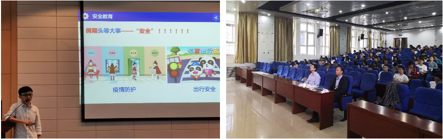 本次安全教育大会就假期的安全问题、防护要求、请销假规定等进行了重点强调;同时,学院专门设计制作了《请假申请书和行程记录单》,要求离校出西安市回家的同学在做好每日健康系统请假申报手续的同时,填报假期离校外出的详细信息,努力做到防患于未然。在此基础上,今年会副书记、院长助理、辅导员于30日中午深入学生公寓走访看望同学,并对公寓用电、卫生等情况开展了现场检查,了解掌握学生整体现实情况,确保假期平稳与安全。
