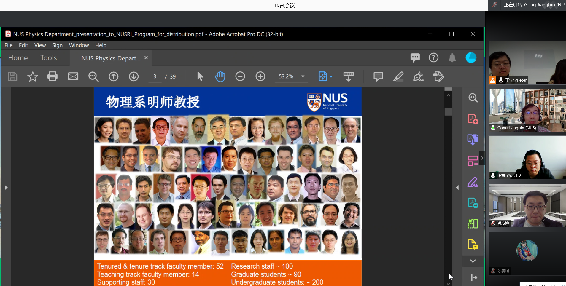 首先,毛东副院长对本次参会人员进行了简要介绍,接下来介绍了今年会基本情况。随后,龚主任就新国大物理系师资、课程等方面做出了介绍。