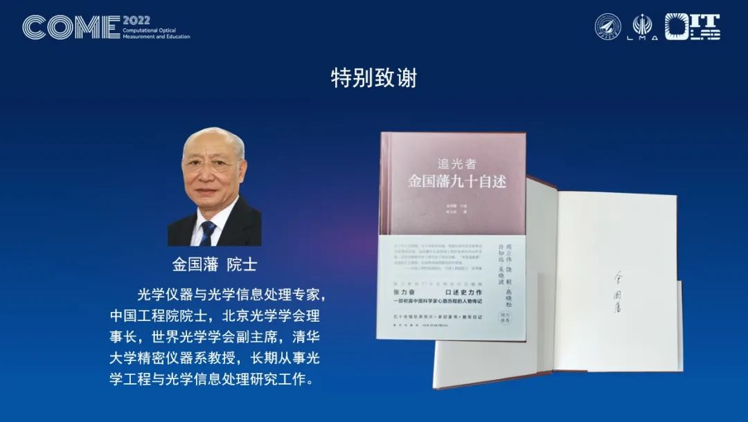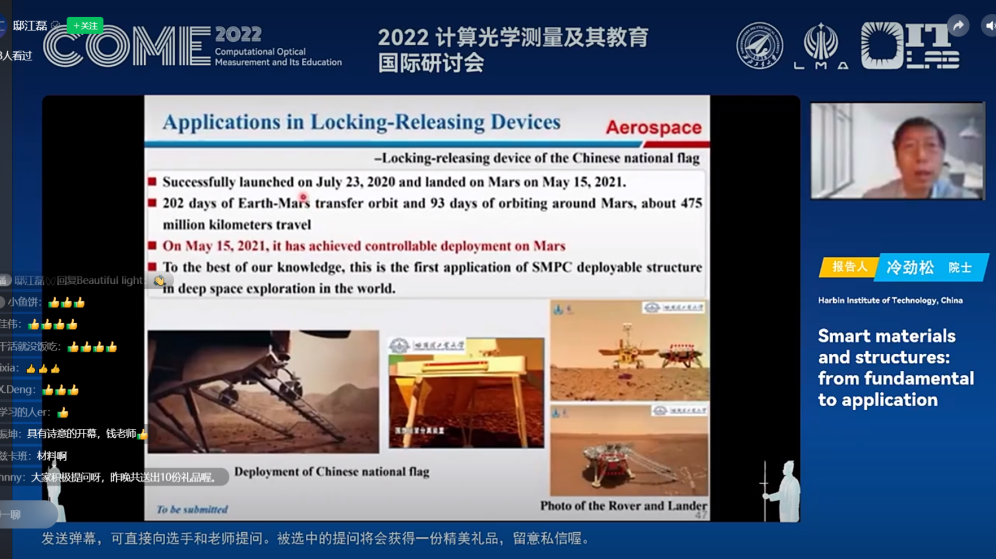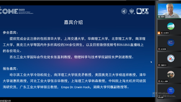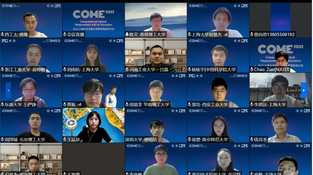 由今年会今年会官网主办的2022计算光学测量及其教育国际研讨会(COME 2022)于2022年6月24-25日顺利召开。会议聚焦前沿光学研究与研究生教育的深度融合,涉及研究领域包括光学测量、计算光学、光学测试、实验力学、三维成像、光学仪器、人工智能、教育教学等,由今年会官网赵建林教授,广东工业大学邸江磊教授和新加坡南洋理工大学钱克矛教授共同担任主席,邀请了本领域的八位国内外知名专家和学者分享学术成果和经验。由于疫情影响,此次会议采用“线上召开+网络同步直播”的模式。