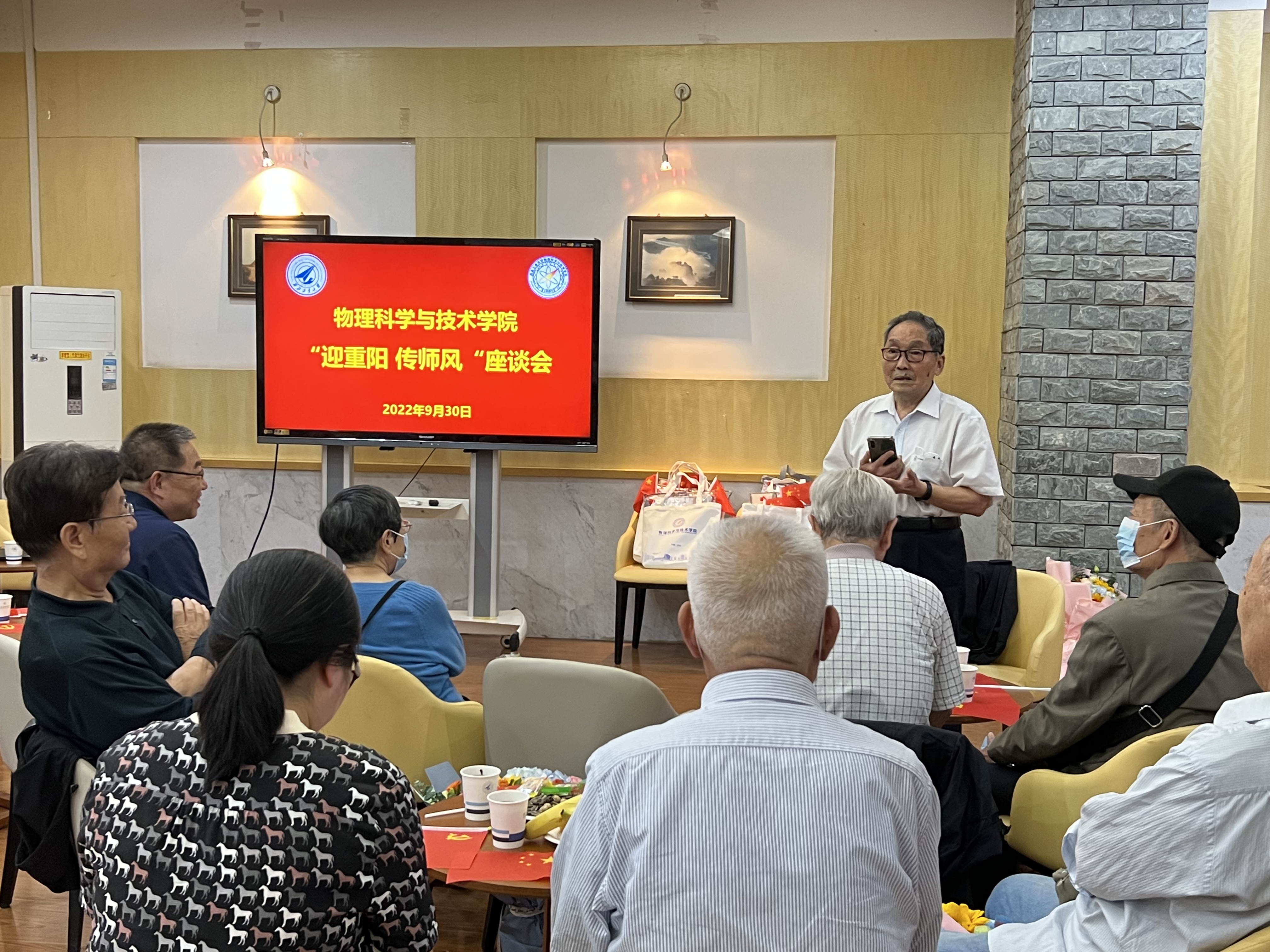 9月30日下午,今年会官网“迎重阳 传师风”座谈会在友谊校区健翔楼举行。学院党委书记晁小荣、副书记王洲航、工会主席郑建邦、院长助理闫娜、李东及其他中青年教师代表出席座谈会,与离退休老教师代表欢聚一堂、共庆佳节。