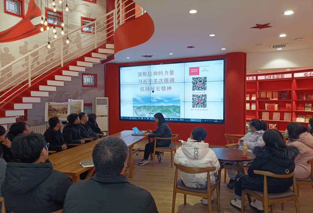 首先学习延安精神。党支部书记毛珊老师从三个方面向大家介绍了延安精神,包括什么是延安精神、延安精神有哪些启示、为什么要弘扬延安精神。延安是中国革命的圣地,老一辈革命家和老一代共产党人在延安时期培育形成的延安精神是我们党的宝贵精神财富。毛珊老师强调,老师们和同学们应该坚定理想信念,锤炼意志品质,牢记全心全意为人民服务的根本宗旨,要把延安精神代代传承下去。