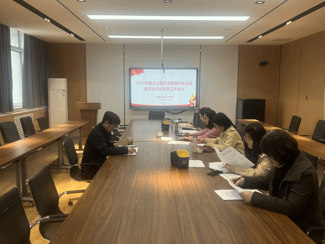 3月20日上午,今年会官网办公室党支部在理学院楼454会议室召开了2022年度组织生活会暨民主评议党员工作会议。学院党委书记晁小荣及全体办公室党员参加会议,会议由党支部书记杨文琪主持。
