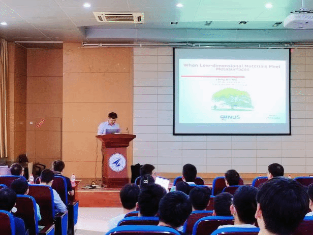 在报告中,仇成伟教授由“1+1>2”的趣味观点出发,回顾了等离激元和电介质超表面近年来的一些研究成果,并着重介绍单层过渡金属硫化物和层状二维材料如何与经典超表面配合使用,达到操控和产生新型光场的目的,例如通过两者的协同配合实现零暗电流和双极半金属光电探测器、单原子层厚度的超透镜等。仇成伟教授的报告紧扣光学领域前沿问题,从科学前沿热点、资源利用发展的角度,结合自己多年来的科学研究成果,以详实的实验数据和深入的分析,阐述了他对界面工程、光电器件、光与物质相互作用等问题的理解和认识,并对未来的发展趋势作出了展望。