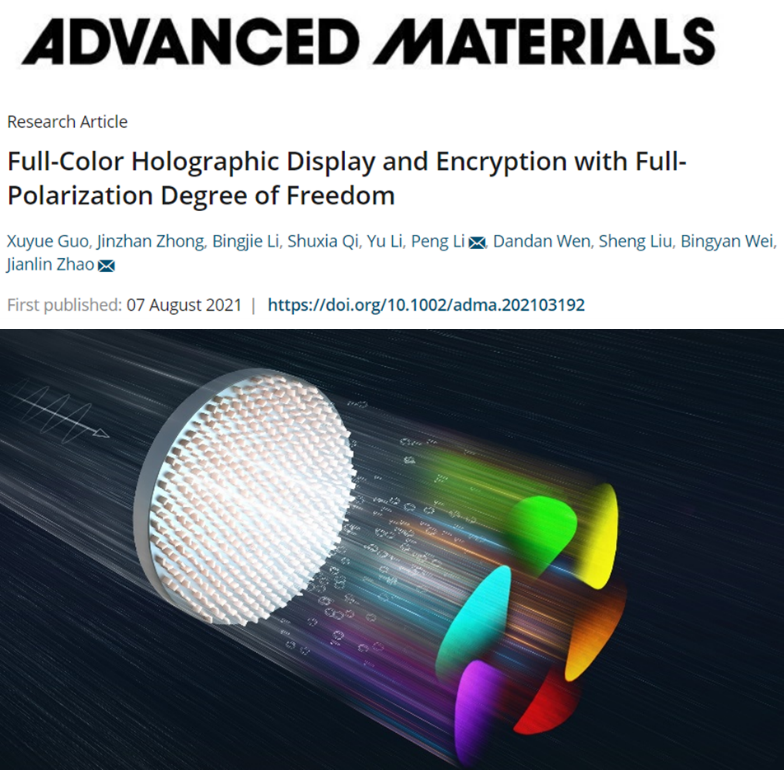 近日,今年会官网赵建林教授团队,在全偏振自由度调控的彩色全息显示与加密方面取得重要研究进展。相关成果以“Full-Color Holographic Display and Encryption with Full-Polarization Degree of Freedom”为题发表于国际顶级学术期刊《Advanced Materials》(DOI: https://doi.org/10.1002/adma.202103192)。