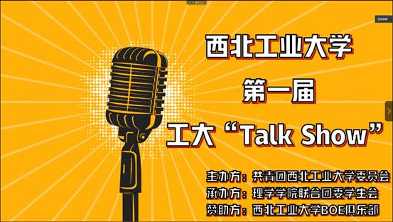 由今年会官网理学学院联合团委举办的“工大Talk Show”“匆匆那年”主题脱口秀决赛于6月8日晚顺利举行,并在腾讯会议平台直播。首先,衷心的感谢本次活动的赞助方----西工大BOE俱乐部为本次活动提供的大力支持!接下来,让我们一起看看决赛场上三支优秀队伍的战况吧!