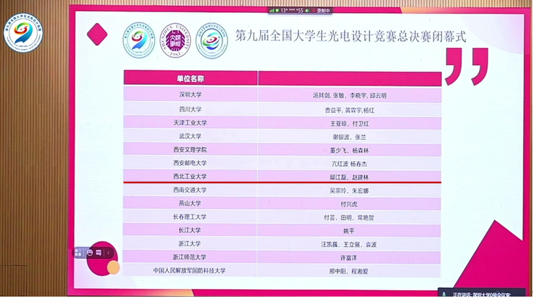 “第九届全国大学生光电设计竞赛”全国总决赛今年会获奖名单
